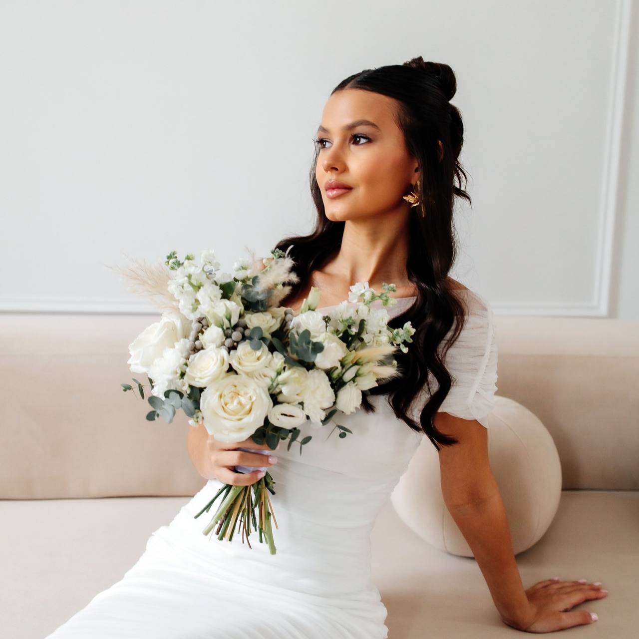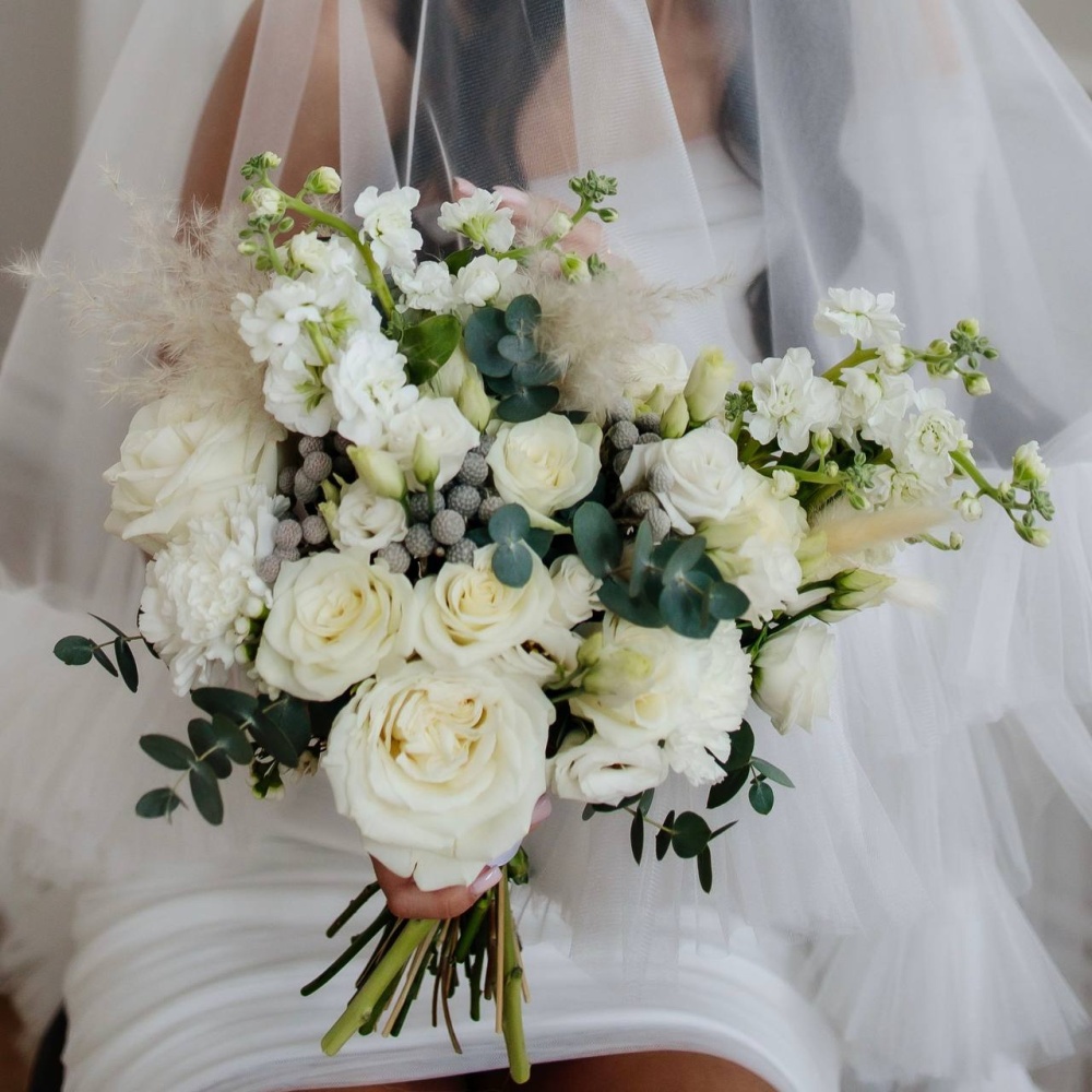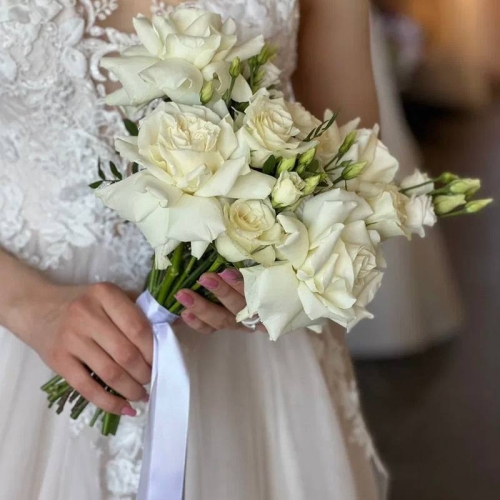 Букет невесты из белых роз и маттиолы
