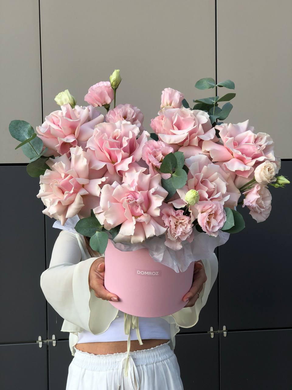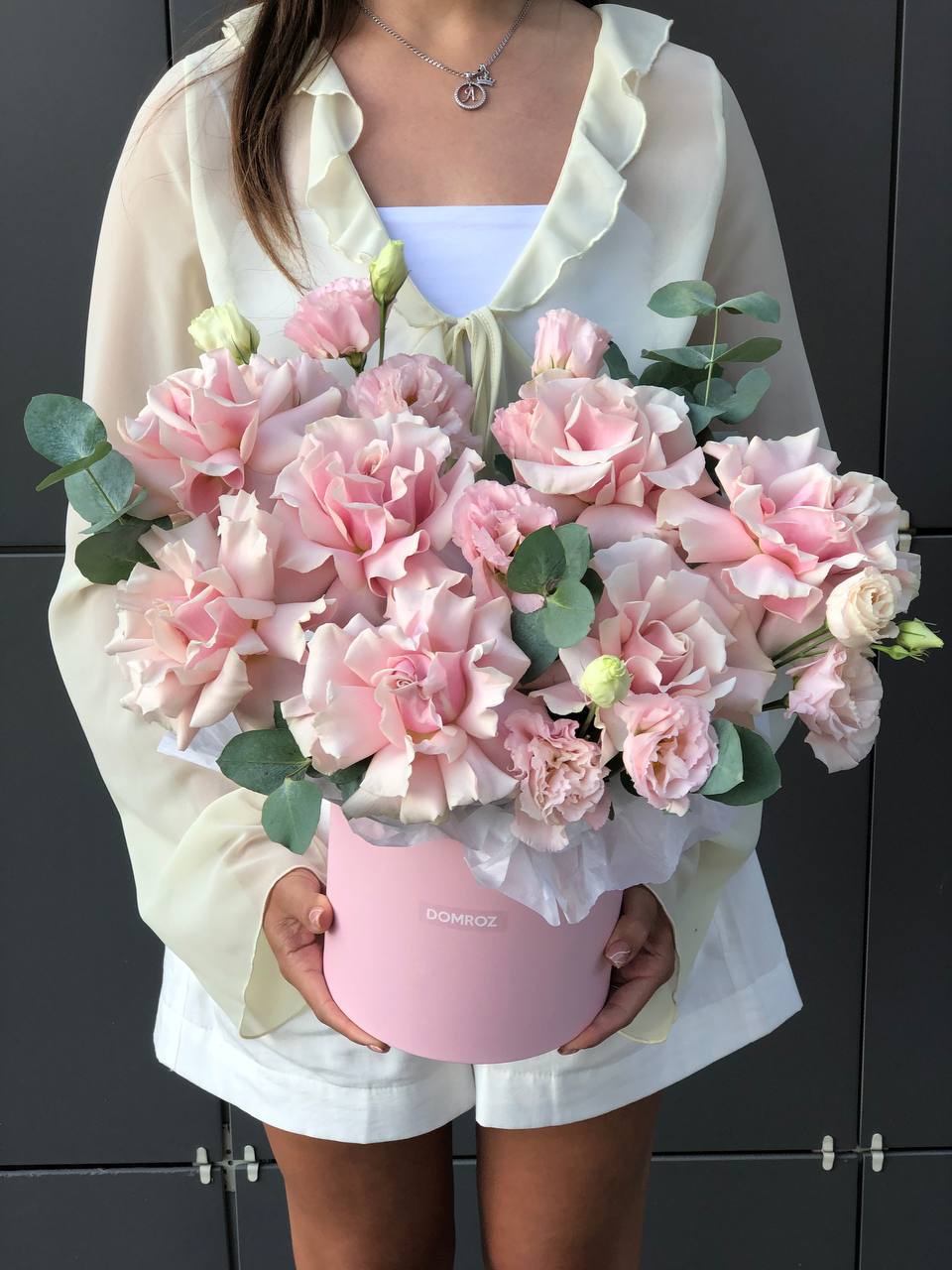 Композиция с ажурными розами и эустомой