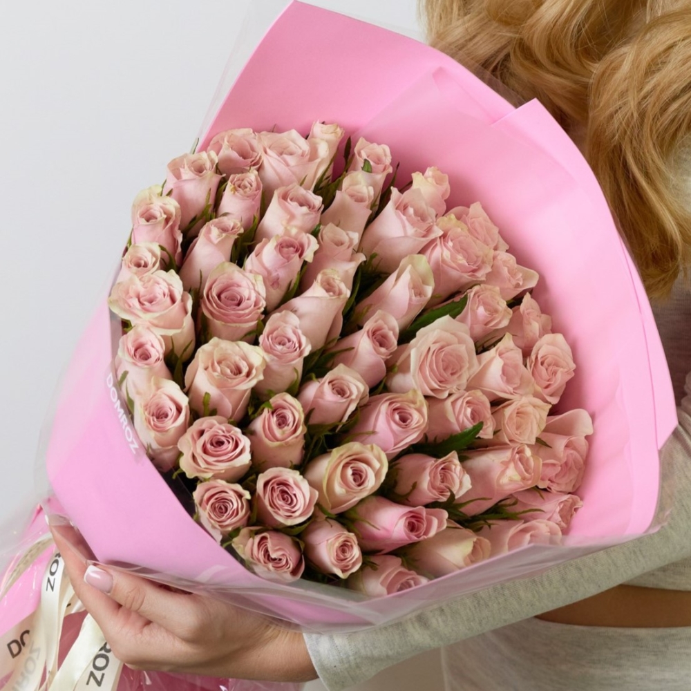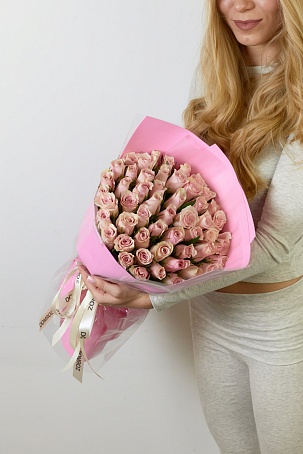 Букет 51 роза Кения нежно-розовая